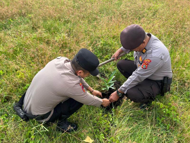 KaPolsek Kateman Bagikan Bibit Pohon Rayakan Personel Berulang Tahun Sekaligus Dukung Penghijauan