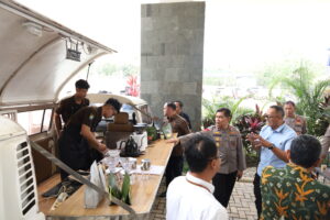 foto: Wakapolda Kepri Brigjen Pol Dr. Anom Wibowo saat memukul gong tanda  pembukaan Pelatihan Berbasis Kompetensi Program Barista dan Instalasi Listrik Sederhana