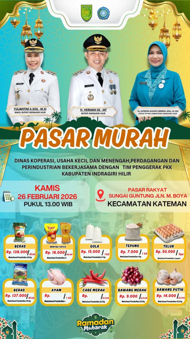 Kegiatan tersebut dijadwalkan berlangsung pada Kamis, 26 Februari 2026, pukul 13.00 WIB, bertempat di Pasar Rakyat Sungai Guntung, Jalan M. Boya, Kecamatan Kateman.