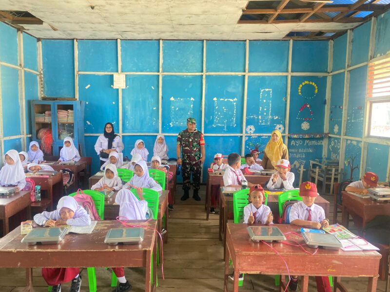 Babinsa Koramil 06 Kateman Dampingi Distribusi 5.250 Porsi Makan Bergizi untuk Pelajar dan Balita